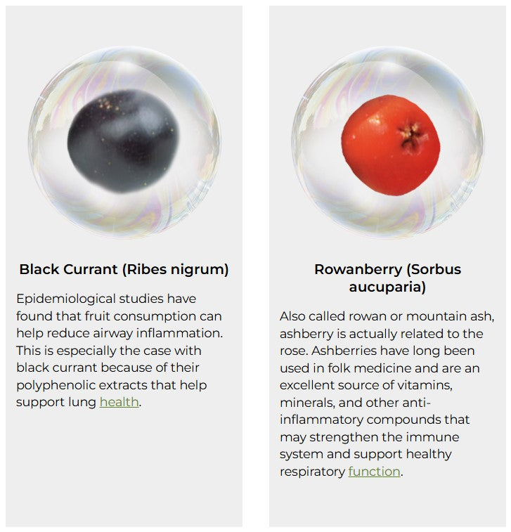 Epidemiological studies have found that fruit consumption can help reduce airway inflammation. This is especially the case with black currant because of their polyphenolic extracts that help support lung health.¹¹
