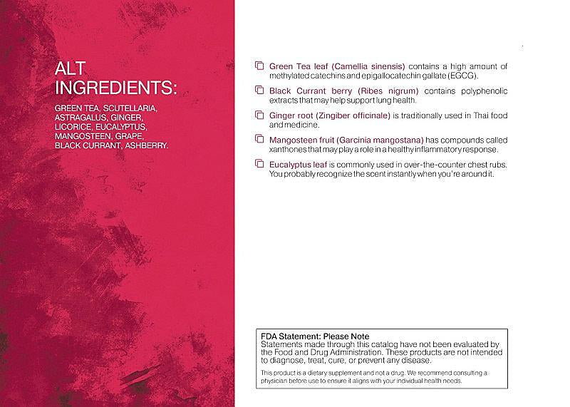 Breathe easy with ALT! By supporting already normal breathing, ALT enhances the body's natural defenses against environmental irritants and airborne particles that can interfere with regular breathing.