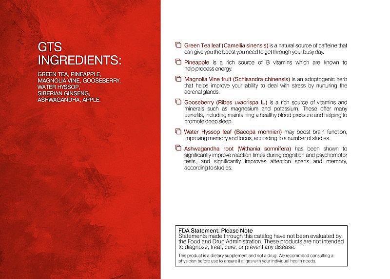 Who doesn’t want more vitality and stamina? GTS is uniquely formulated to support strength, stamina, and vitality. The all-natural ingredients support whole-health well-being in every delicious pineapple-flavored drop.